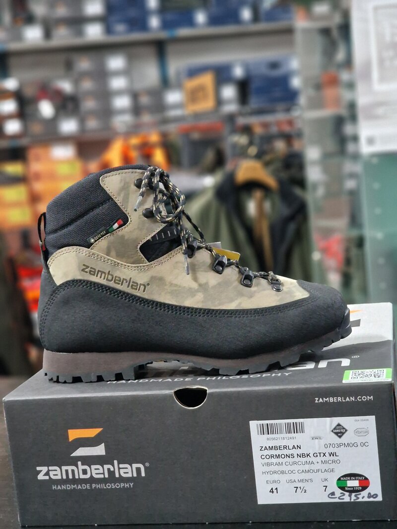 La tomaia in Nabuk Terracare®, con l’esclusiva fantasia camouflage, è morbida e flessibile ed è foderata in GORE-TEX ePE Performance Comfort per mantenere la termoregolazione nelle diverse situazioni climatiche e assicurare impermeabilità e traspirazione.